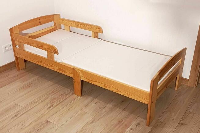 Solidne, drewniane łóżko dziecięce marki MEBLE SOSNOWE STAR, które można regulować wraz ze wzrostem dziecka. Wykonane ...