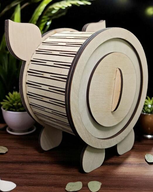 Drewniana skarbonka w kształcie świnki to idealny sposób, by zachęcić dzieci do oszczędzania w zabawny i kreatywny ...