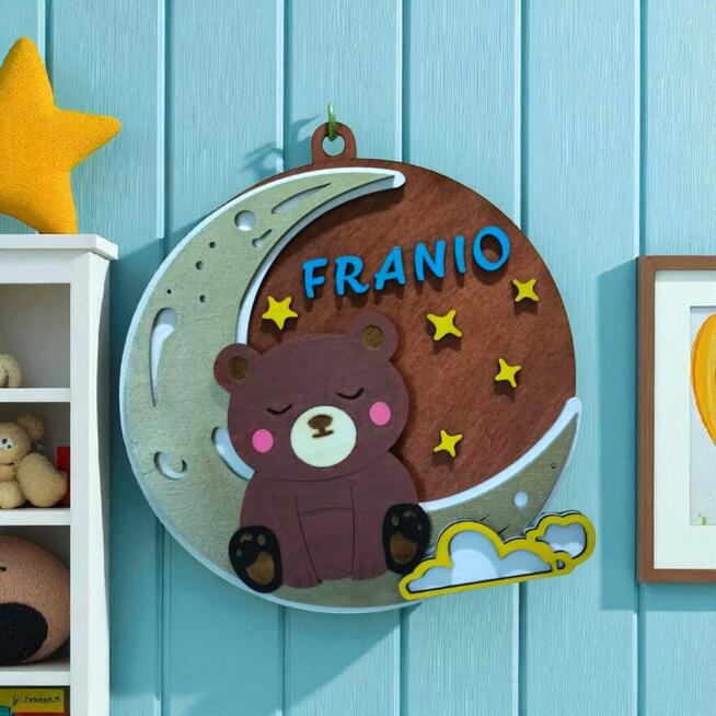 Drewniana Tabliczka z Imieniem, która wprowadzi ciepło i wyjątkowy charakter do pokoju Twojego dziecka! Ta urocza ...