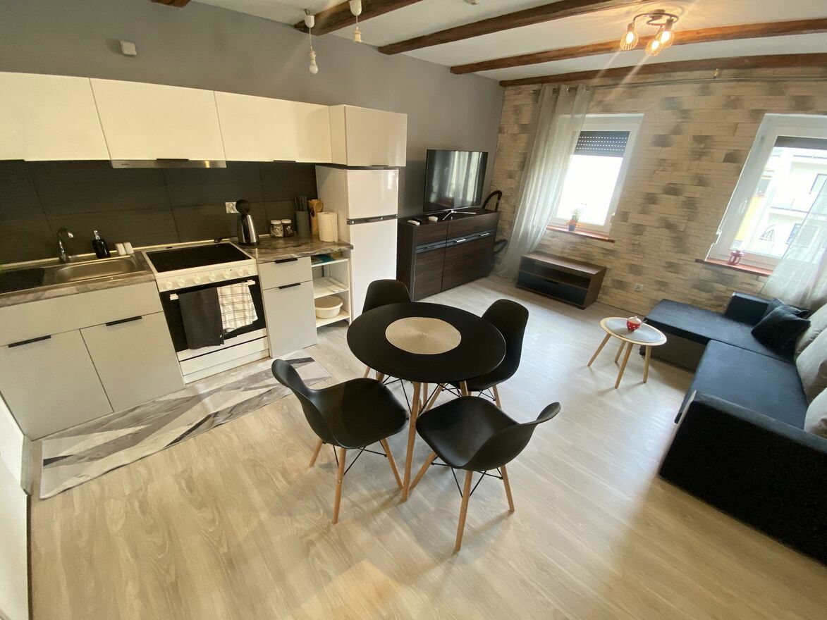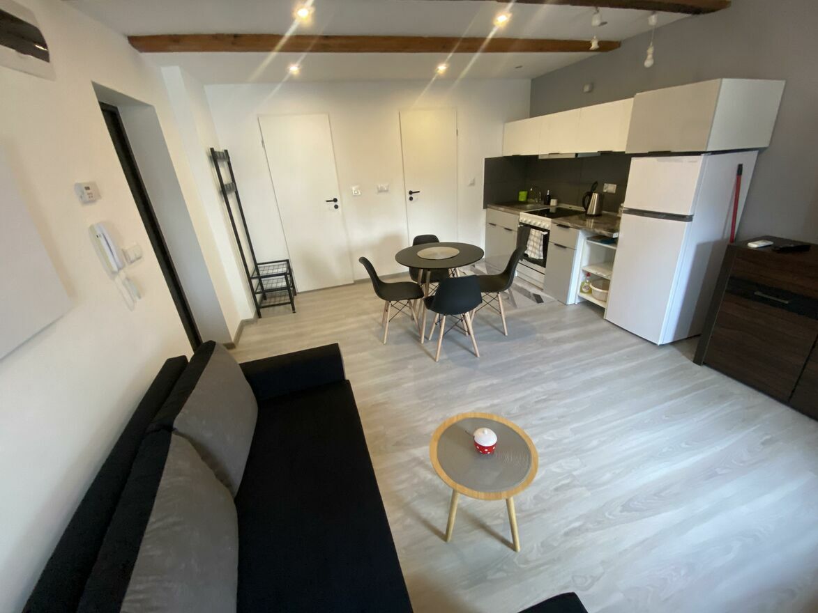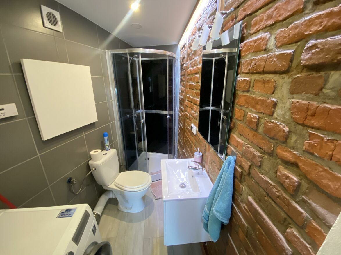 W skład mieszkania wchodzi: pokój dzienny z aneksem kuchennym, sypialnia z oknem dachowym, ponadto łazienka z wc.
