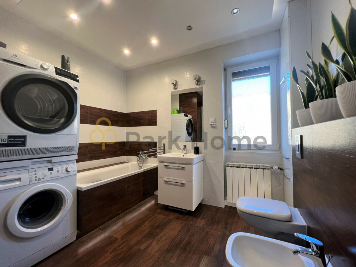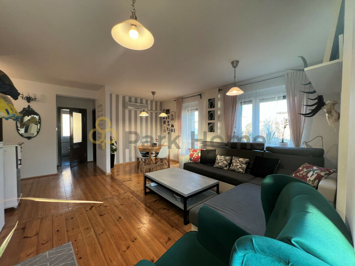 Obecnie podzielony jest na dwa osobne mieszkania (parter i piętro), jednak istnieje możliwość przywrócenia nieruchomości do stanu pierwotnego. (szczegóły u Doradcy).