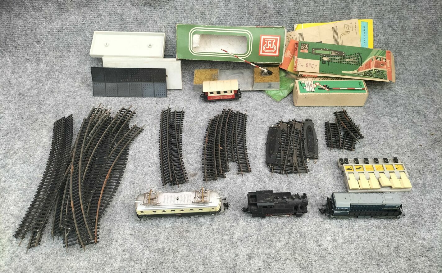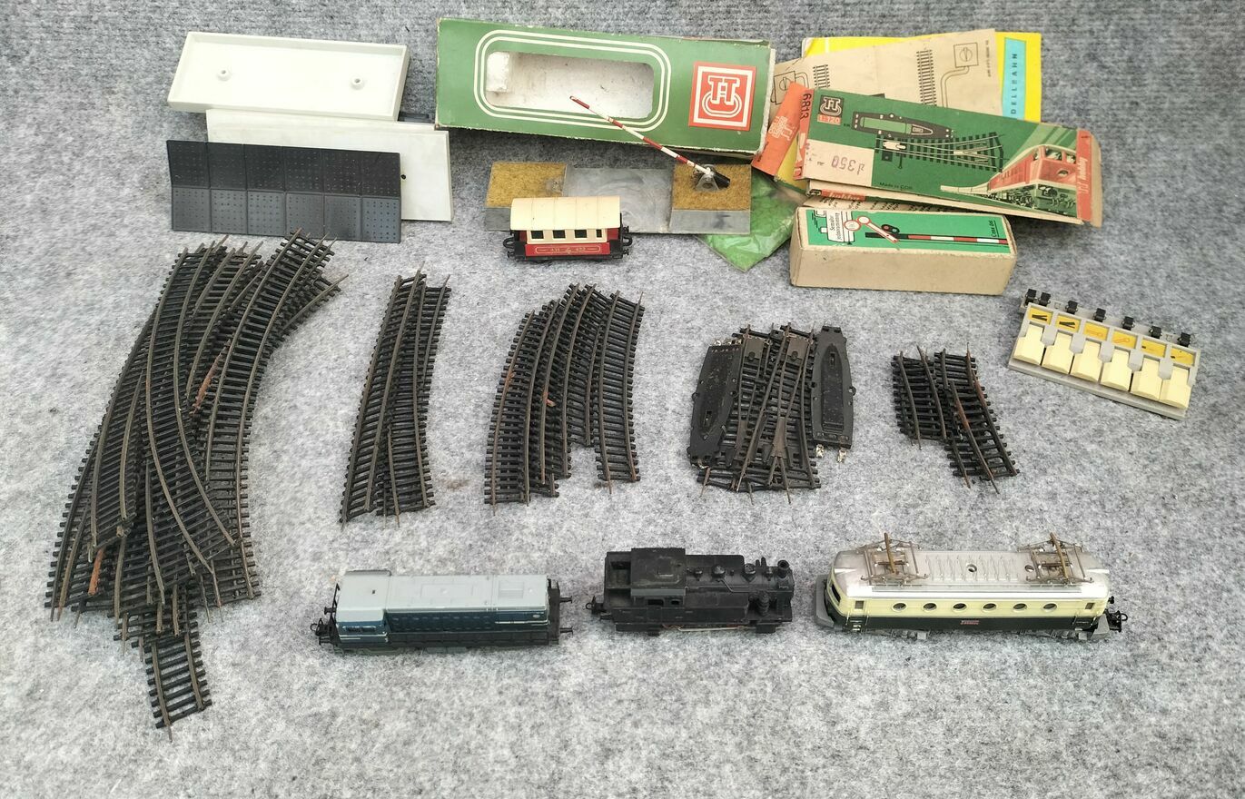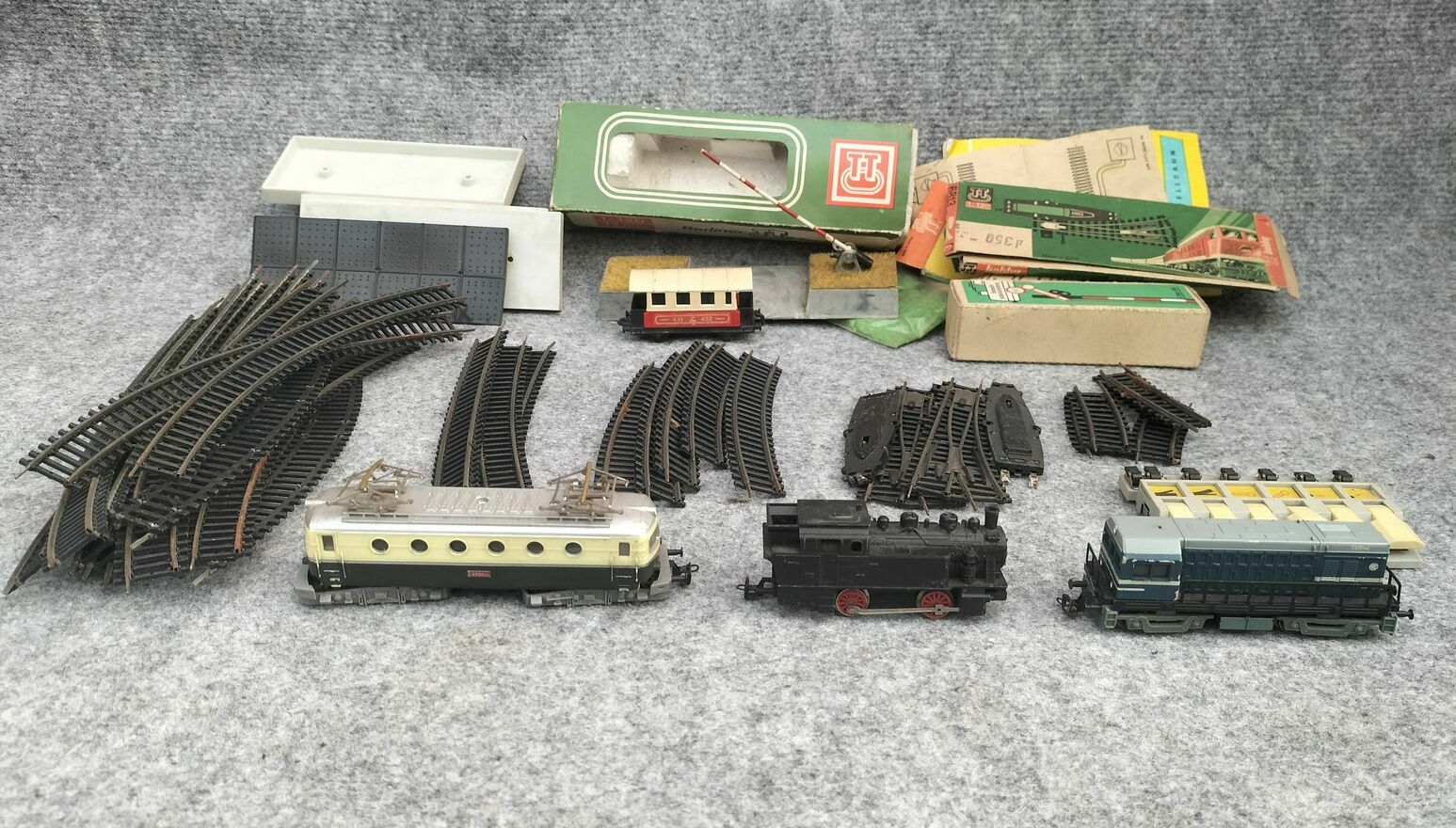Kolejka tory wszystko co widać na zdjęciachSą trzy lokomotywy TT jedna jest z oryginalnym opakowaniem,tory niektóre mają korozję