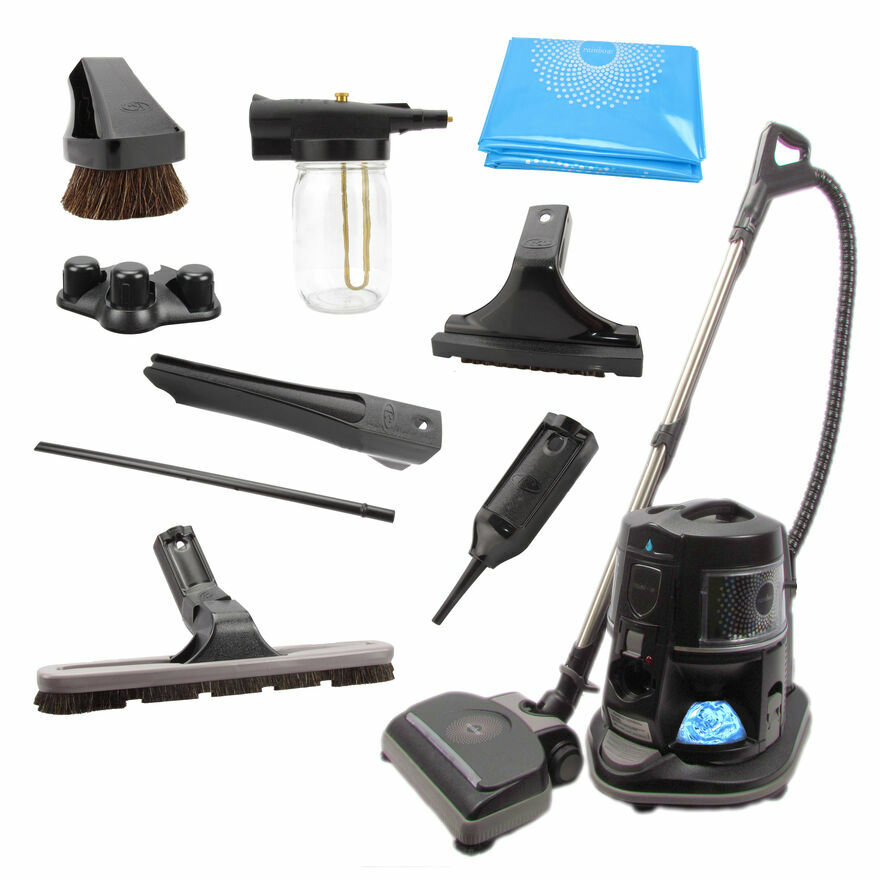 W tym modelu odkurzacza Rainbow brud zasysany jest do specjalnego pojemnika z wodą, którą po skończonej pracy możesz wylać do toalety. To łatwe i oszczędne rozwiązanie. Nie musisz kupować worków, a dodatkowo powietrze wydostające się z odkurzacza podczas pracy jest nawilżone i nie przeszkadza alergikom. Odkurzacz z funkcją zbierania wody ułatwi Ci sprzątnięcie z podłogi rozlanych płynów lub błota. Zajmie Ci to tylko chwilę wystarczy, że wybierzesz odpowiednią ssawkę.Odkurzacz Rainbow E2 Black zestaw do twardych powierzchni Odkurzacz ten wykorzystuje separator (którego jest twórcą) unikatowy system wodnej filtracji do wyłapywania zanieczyszczeń z powierzchni i z powietrza. Aby sprostać wymaganiom dzisiejszego rynku, firma wprowadziła dwa rozwiązania: silnik indukcyjny (bez szczotkowy) Huragan i system filtracji HEPA. Woda i elektrostatyka spowodowała, że powietrze w Twoim domu będzie zawsze czyste i zdrowe. Rainbow E2 Black to niezawodny sprzęt wyprodukowany przez firmę Rexair. Jest to nie tylko doskonały odkurzacz, ale przede wszystkim filtr powietrza. Jego wielozadaniowość jest doceniana od wielu lat na całym świecie. Każdy, kto choć raz zetknął się z tym urządzeniem wie, że Rainbow nie ma sobie równych. Rainow E2 Black charakteryzuje się: dwubiegunowym silnikiem sterownym przez komputer technologią Power of Water-kurz i alergeny zostają zatopione w wodzie-nie pływają tak jak w innych odkurzaczach wodnych na jej powierzchni separatorem-który jest sercem urządzenia i wsparciem technologii Power of Water funkcją oczyszczania powietrza-jako jeden z niewielu sprzętów na świecie uzyskał certyfikat Astma & Alergy Friendly funkcją trzepania dywanów, łóżek, kanap- absolutnie ulubiona funkcja każdego, kto ceni sobie zdrowy sen, trzepaczka dociera swoją mocą ponad 20 cm w głąb powierzchni-efekt można zobaczyć gołym okiem, gdyż znajdzie się w bidonie Rainbow możliwością czyszczenia najbardziej problematycznych, trudno dostępnych powierzchni funkcją pompowania (balonów, materaców, piłek itp.) wykonaniem z najtrwalszych materiałów nowoczesnym designem