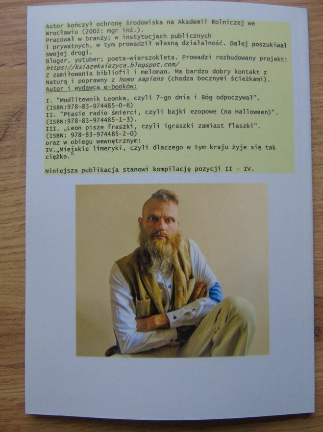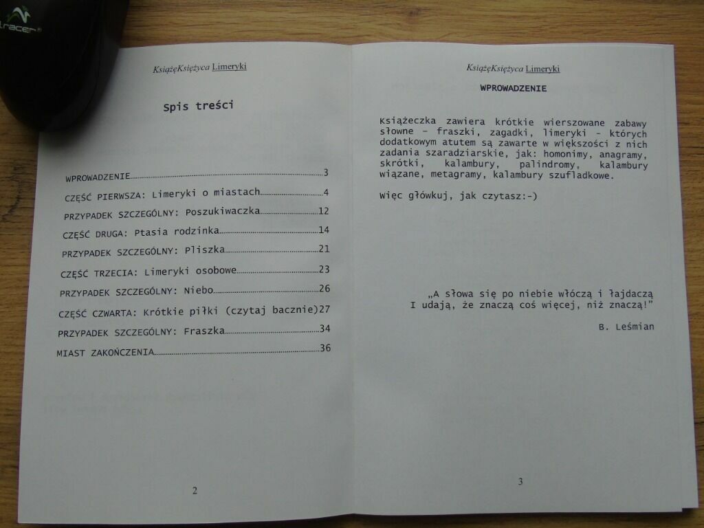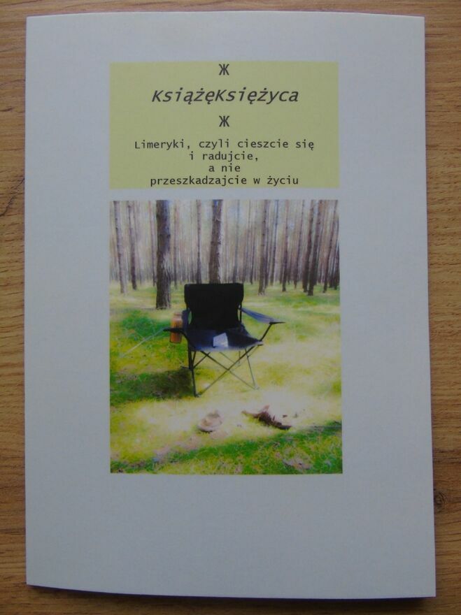 Tomik poezji "Limeryki, czyli cieszcie się i radujcie, a nie przeszkadzajcie w życiu", w wersji książkowej. Autor: KsiążęKsiężyca.Książeczka zawiera krótkie wierszowane zabawy słowne – fraszki, zagadki, limeryki - których dodatkowym atutem są zawarte w większości z nich zadania szaradziarskie, jak: homonimy, anagramy, skrótki, kalambury, palindromy, kalambury wiązane, metagramy, kalambury szufladkowe.