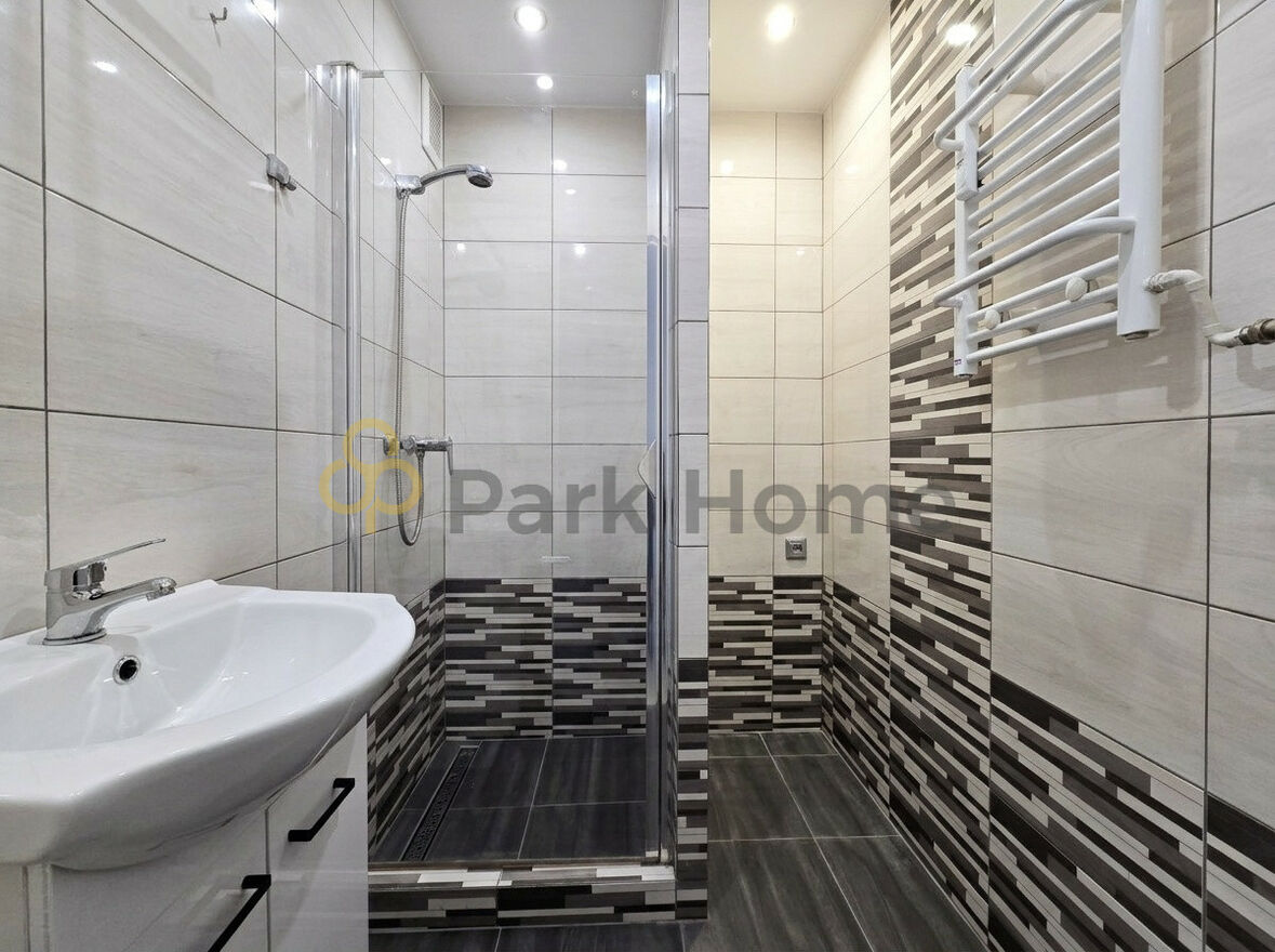 Sercem mieszkania jest jasny salon z wyjściem na balkon, z którego rozpościera się kojący widok na dojrzałą zieleń i korony drzew - to idealne miejsce na poranną kawę. Pozostałe dwa pokoje doskonale sprawdzą się jako sypialnie lub pokój dla dziecka i gabinet do pracy. Łazienka oraz osobne WC zostały wykończone w bardzo wysokim standardzie przy użyciu eleganckich płytek w odcieniach beżu i szarości, z dekoracyjnymi mozaikami. W łazience zainstalowano nowoczesną kabinę prysznicową typu walk-in z transparentnym szkłem, co podkreśla współczesny charakter lokalu. Stolarka okienna PCV oraz grzejniki gwarantują doskonałą izolację termiczną i estetykę.