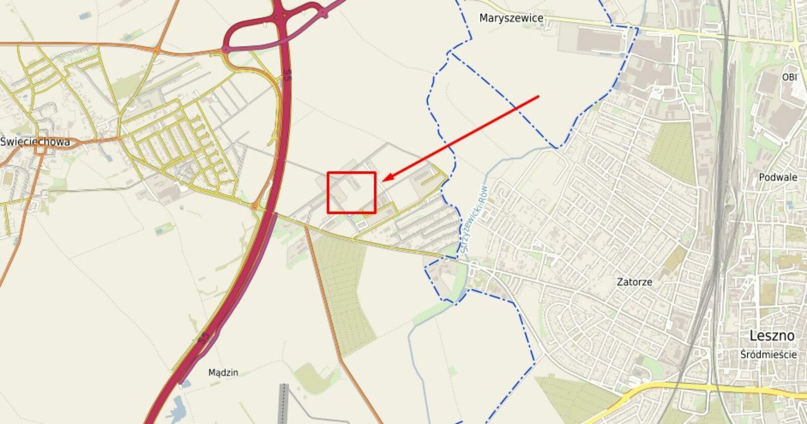 Teren położony w bliskiej odległości węzła komunikacyjnego -- Święciechowa -- ulokowany jest w połowie drogi ekspresowej relacji Poznań / Wrocław.