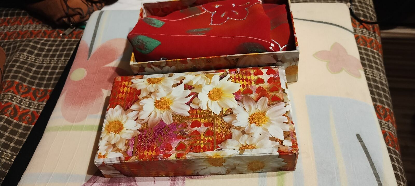 Ozdobna chusta - prezent w ładnym pudełkuŁadna chusta z ozdobnymi kwiatami